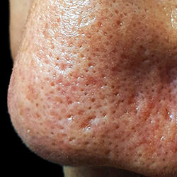 ▼酒糟患者臉上的毛孔中央,都有個小白點,