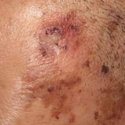 理論上,老人斑或曬斑,和日光性角化症的長相,其實有些不同,但困難點就在於,日光性角化症有時病灶很小,也沒那麼紅,只有單獨一顆,常常夾雜在一堆老人斑中間。如果在雷射除斑時,沒有注意看,常常會被忽略掉。結果雷射打完後,會以為斑已除掉了,卻沒想到皮膚裡殘存的癌細胞,正朝著更惡性的方向發展,最後演變成鱗狀細胞癌 (squamous cell carcinoma),甚至轉移到全身。