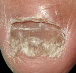 ▼如果侵犯得很深入,已到達指甲的根部,則外用藥的效果通常不是很好,口服抗黴菌藥物是比較好的選擇。